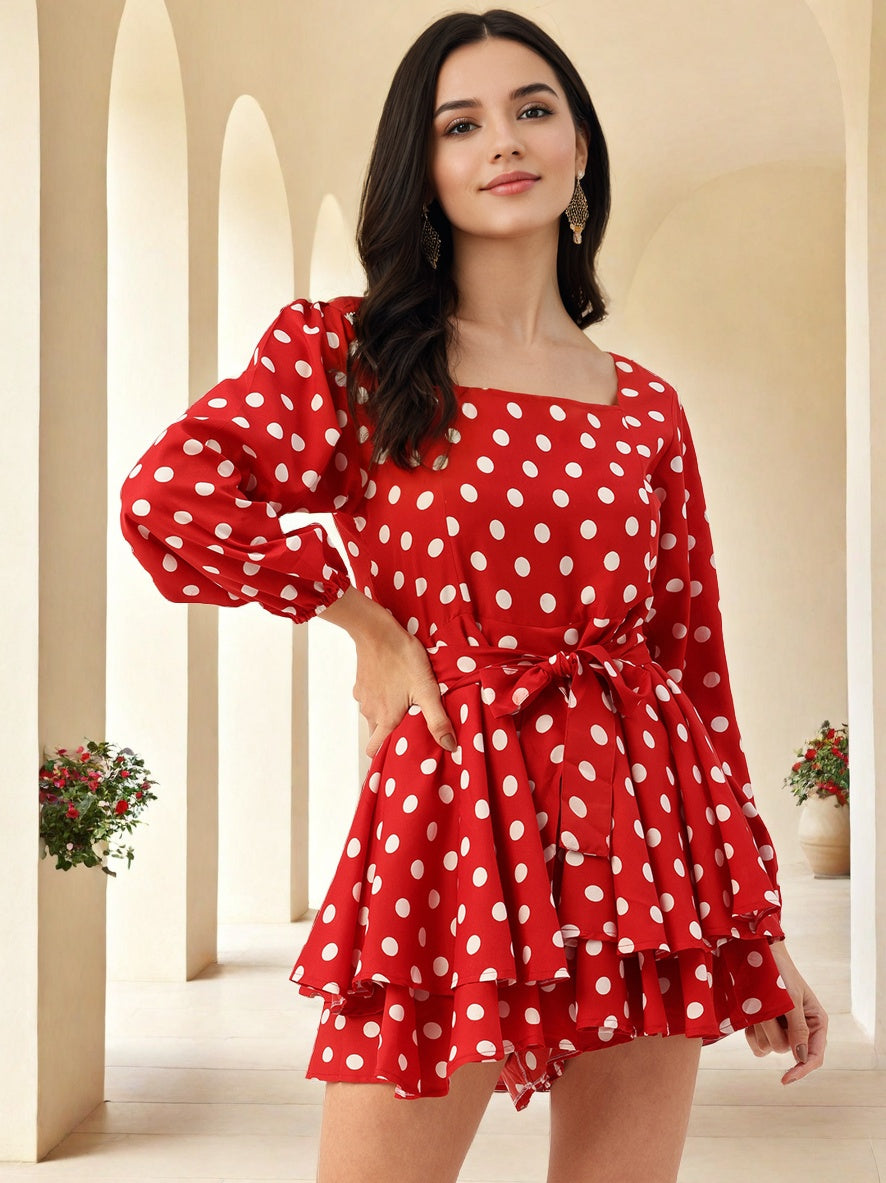 Bring playful charm to your wardrobe with the Sleek Italia Women Polka Dots Printed Playsuit....