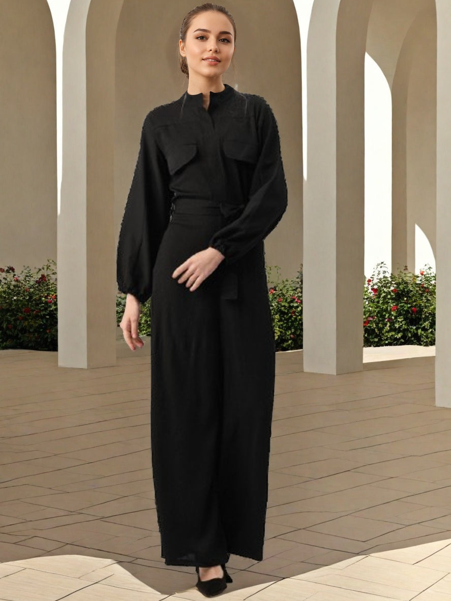 Step into effortless style with the Sleek Italia V-Neck Puff Sleeves Basic Jumpsuit. Designed for...