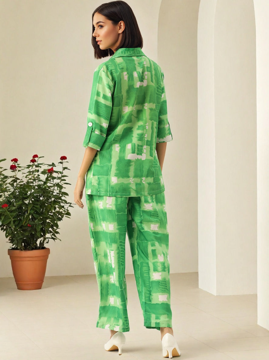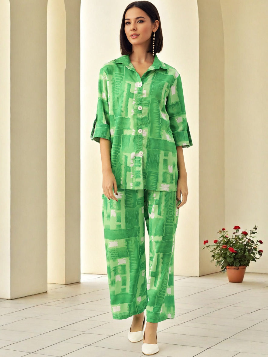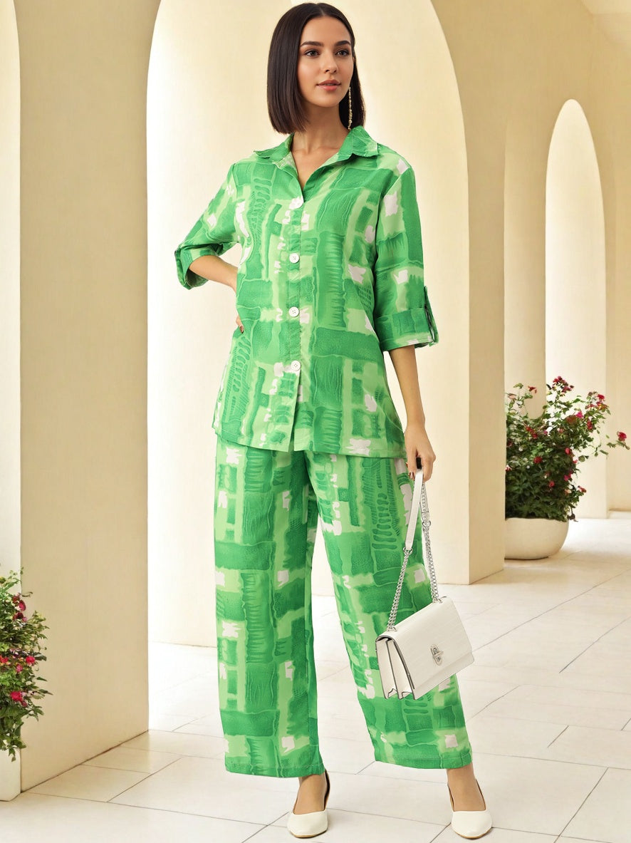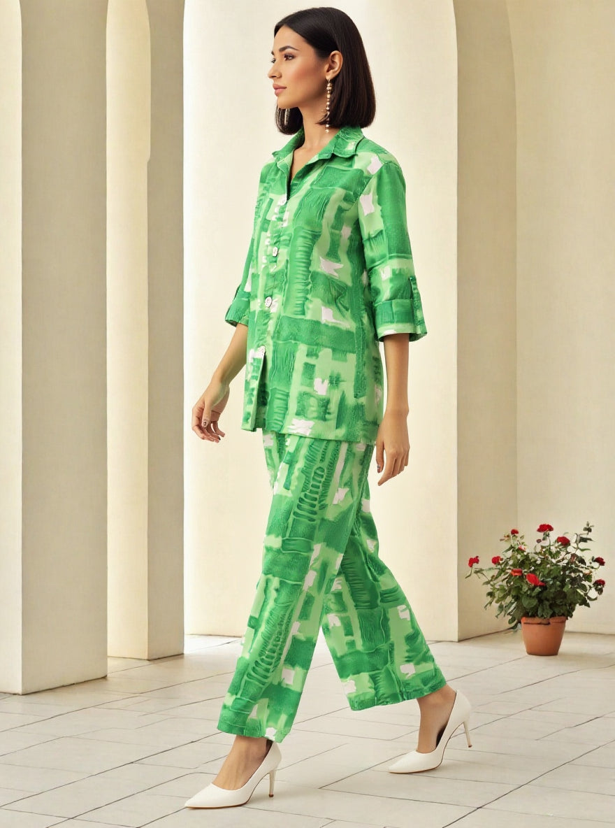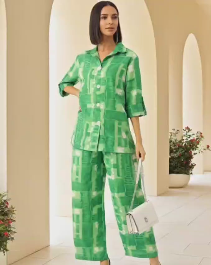 Step into effortless style with the Sleek Italia Abstract Printed Shirt & Trouser Set. Designed with modern prints and a relaxed yet tailored fit, this co-ord set is perfect for women who love fashion that’s easy, chic, and versatile. The roll-up sleeve shirt gives you a smart-casual vibe, while the matching trousers complete the look with comfort and elegance. Whether it’s a workday, brunch, or a casual outing, this set keeps you looking polished without trying too hard.