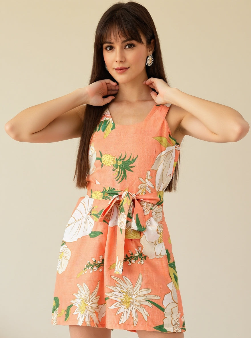 Bring elegance and comfort together with the Sleek Italia Floral Printed Jumpsuit with Waist Tie-Up. Designed with delicate floral prints and a flattering waist tie, this one-piece outfit adds effortless charm to your everyday style. The tie-up detail highlights your waist beautifully, while the soft and breathable fabric makes it perfect for all-day wear. From brunches to vacations or evening outings, this jumpsuit is the versatile fashion piece you’ll love to wear on repeat.