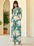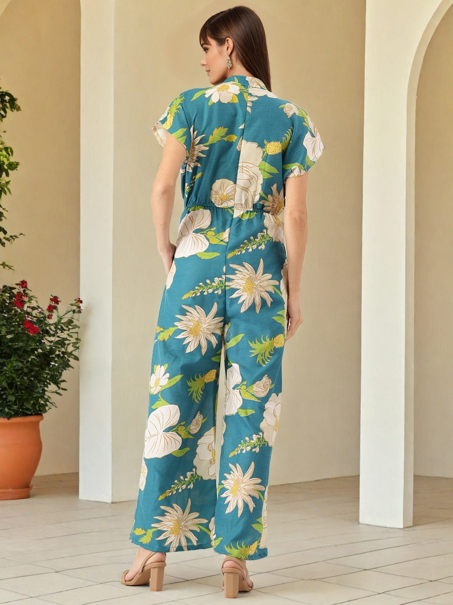 This women's floral printed shawl collar jumpsuit blends timeless elegance with everyday comfort. Featuring a sophisticated shawl neckline and a soft waist tie-up, it beautifully contours your shape while offering adjustable ease. The vibrant floral pattern adds a refreshing, feminine charm, making it ideal for brunches, casual outings, or semi-formal gatherings.
