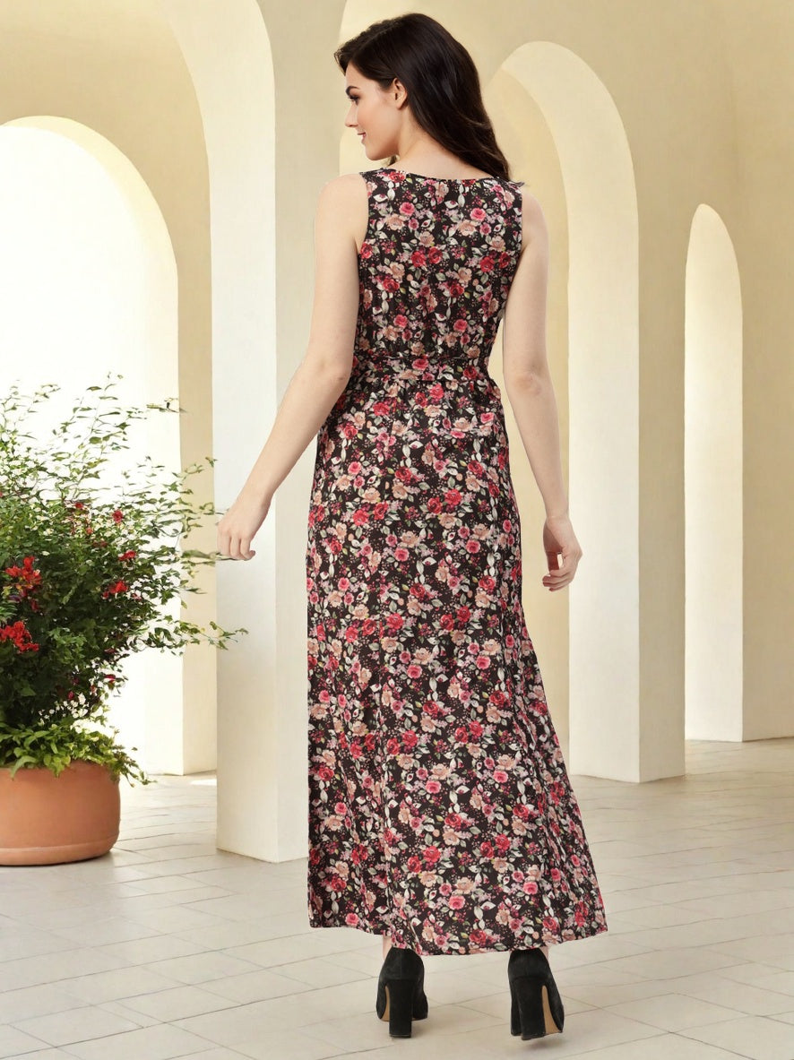 ✅ Elegant Design – Sleeveless floral print maxi dress with a flattering V-neckline.
