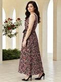 Step out in style with this Sleek Italia Floral Printed V-Neck Sleeveless Crepe Maxi Dress, a perfect blend of comfort and elegance. The sleeveless design with a V-shaped neckline gives it a modern touch, while the soft flow of the fabric ensures you stay comfortable all day long.
