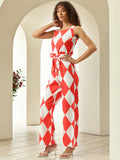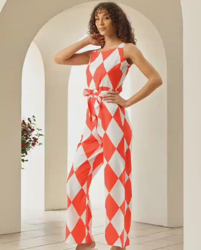 Bring playful elegance to your wardrobe with the Sleek Italia Geometric Printed Basic Jumpsuit. Featuring bold geometric prints and chic waist tie-ups, this one-piece outfit blends comfort with style in the most effortless way. The relaxed yet flattering fit makes it perfect for casual brunches, day outings, or even a fun evening with friends. Just slip it on, tie it up, and you’re ready to shine with minimal effort.