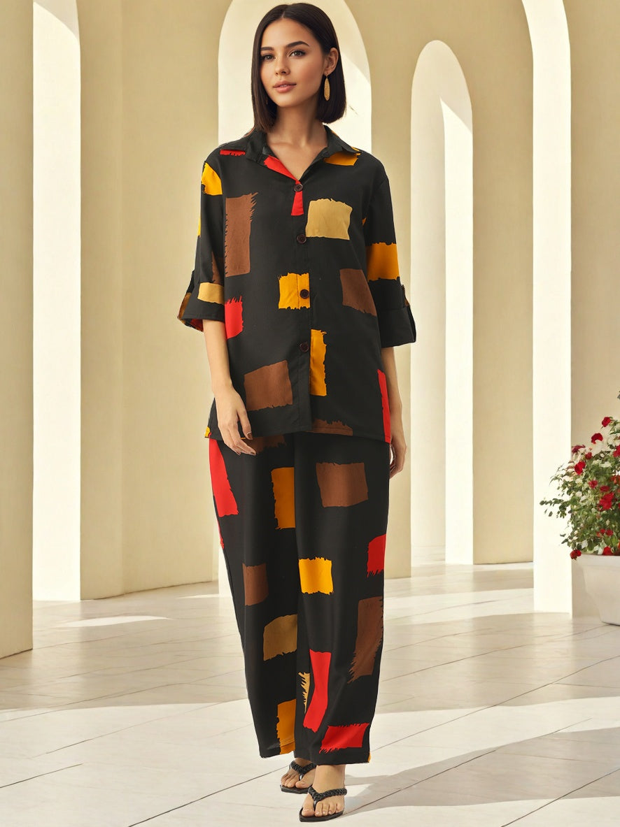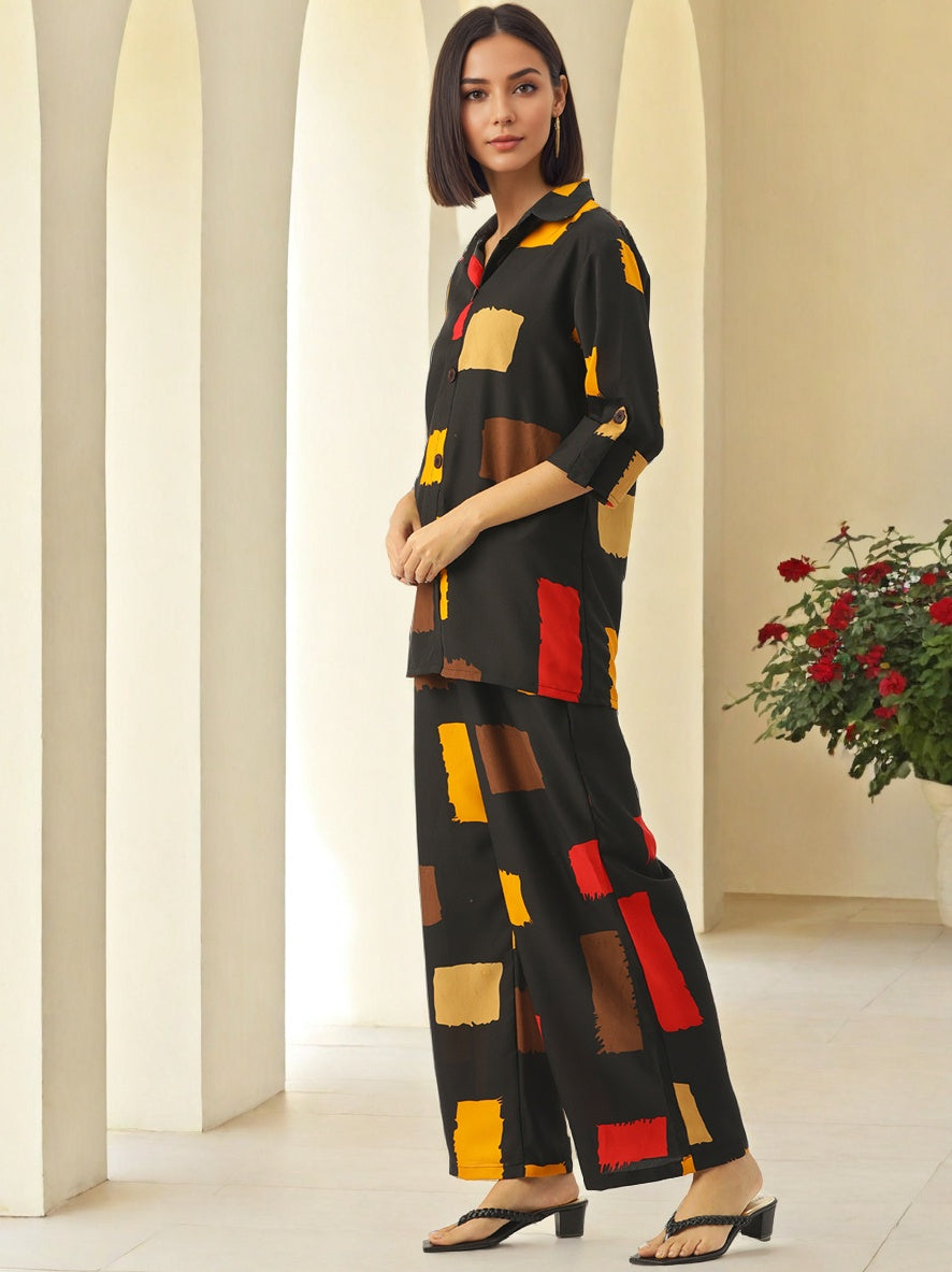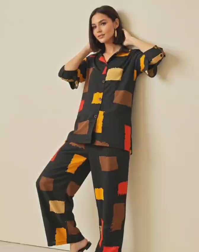 Upgrade your everyday style with the Sleek Italia Printed Shirt With Trousers – a ready-to-wear set that blends comfort and elegance in the most effortless way. The stylish printed shirt pairs perfectly with matching trousers, giving you a complete look without the hassle of mixing and matching. Whether you’re heading to work, a brunch, or a casual outing, this co-ord set makes dressing up simple, chic, and comfortable.