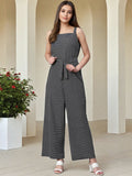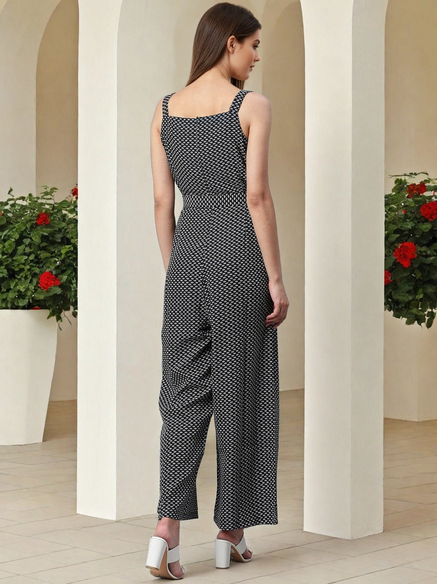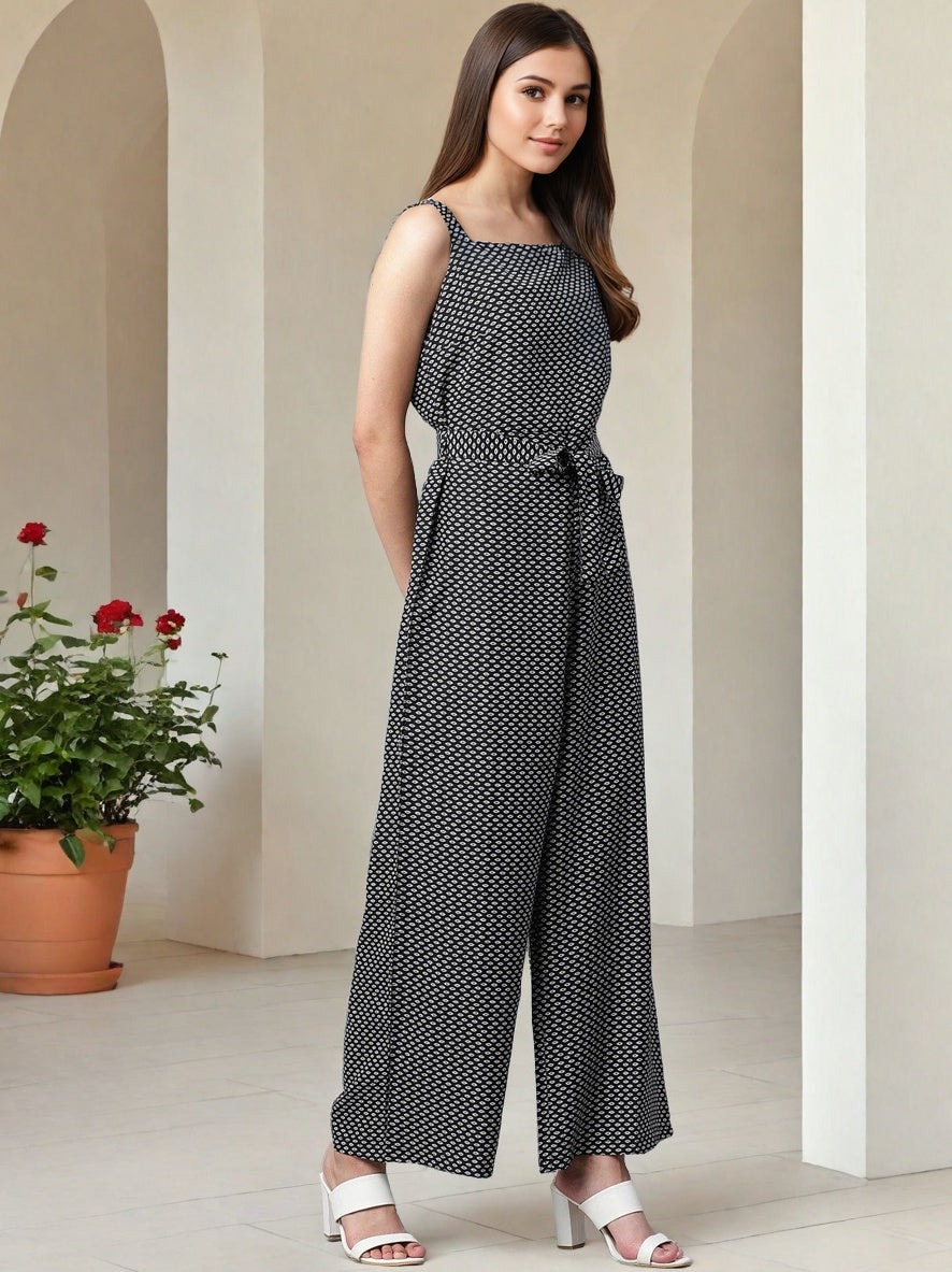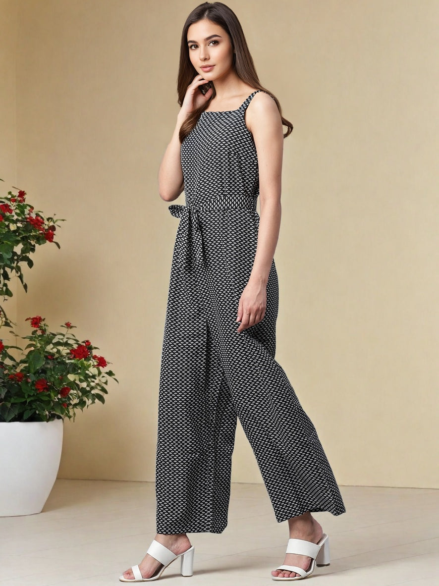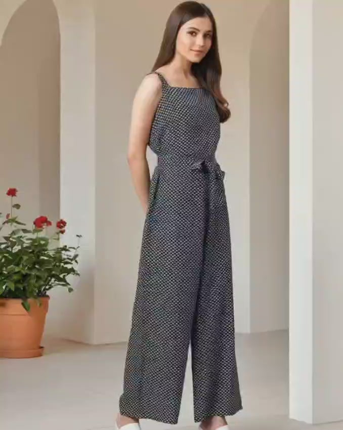 This women’s printed shoulder straps jumpsuit is the perfect mix of casual chic and flattering fit. Featuring delicate shoulder straps and a stylish waist tie-up, it enhances your silhouette while ensuring day-long comfort. The eye-catching print adds a fun, vibrant touch that makes it perfect for warm-weather outings, vacations, or relaxed get-togethers.