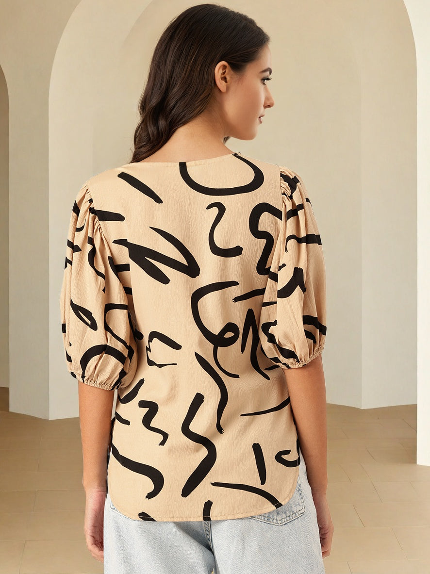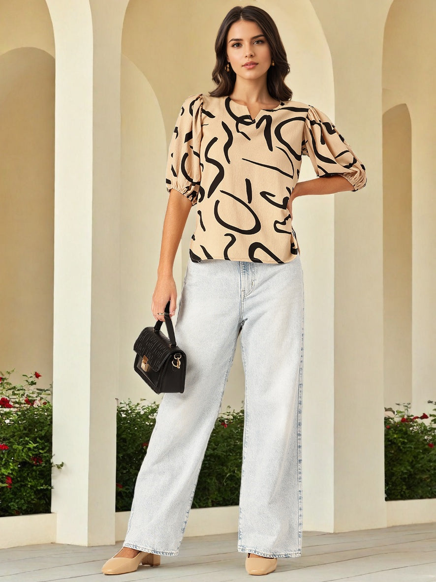 Add a touch of chic elegance to your wardrobe with the Sleek Italia Abstract Print Puff Sleeve Crepe Top. Designed with bold abstract prints and stylish puff sleeves, this top brings modern sophistication to your everyday look. Made from lightweight crepe fabric, it feels soft, breathable, and perfect for all-day wear. Pair it with jeans for a casual vibe or trousers and skirts for a polished finish – this top adapts beautifully to any occasion.