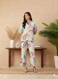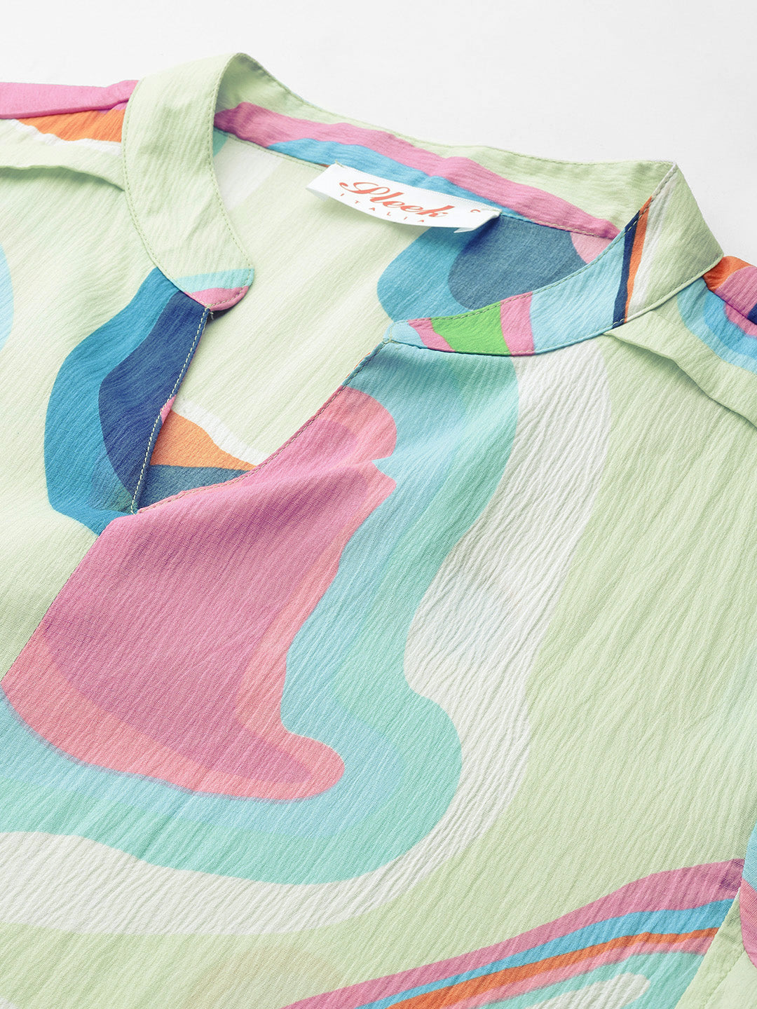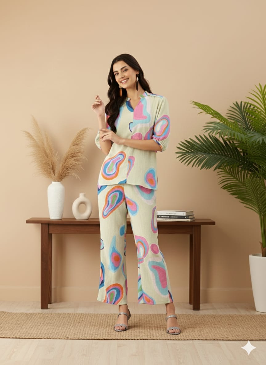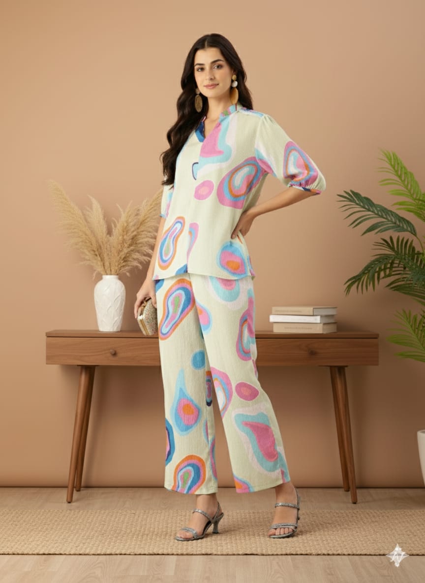 Sleek Italia Abstract Printed Crinkled Effect Mandarin Collar Co-ords