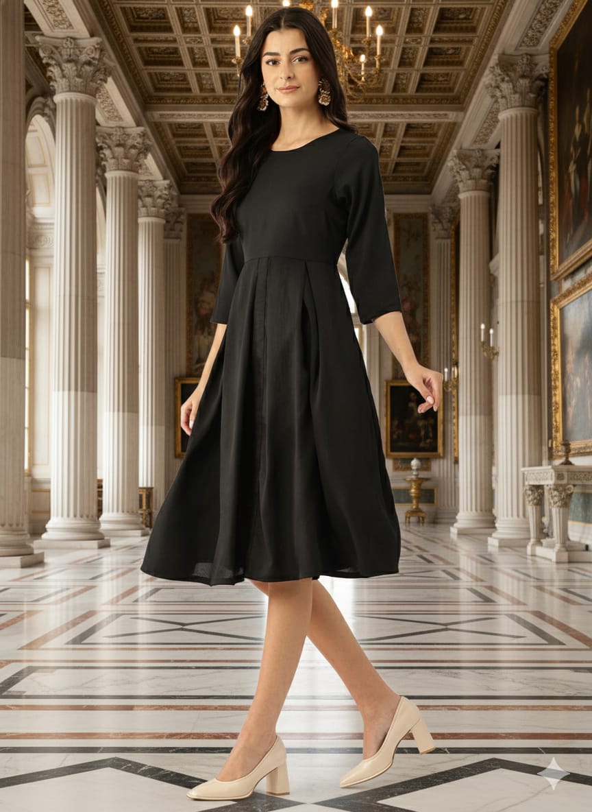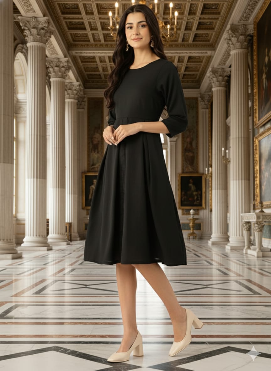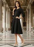 - Black solid a-line dress