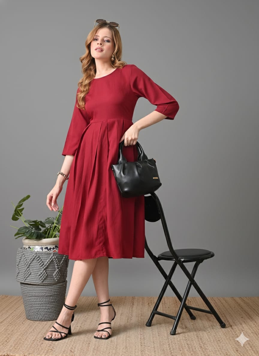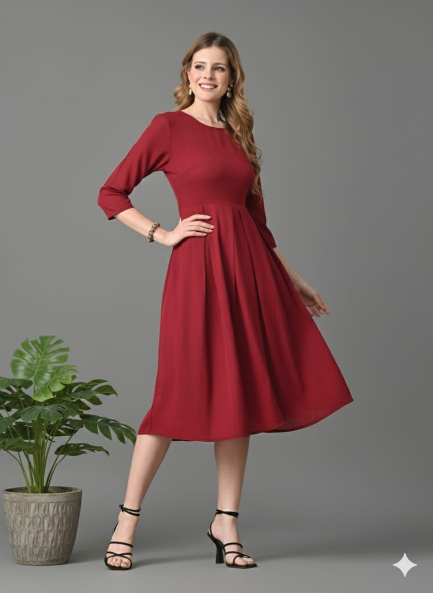 - Maroon and maroon solid fit & flare dress
