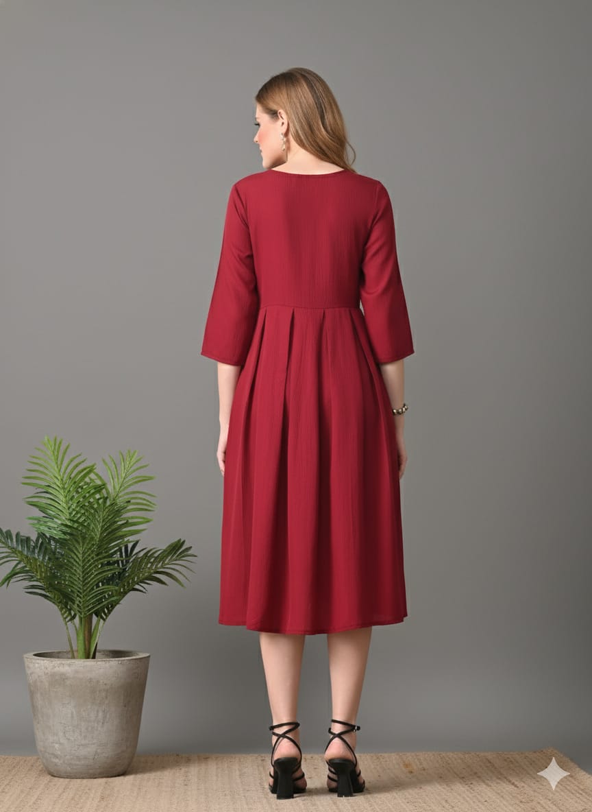Sleek Italia Maroon Crepe Fit & Flare Midi Dress