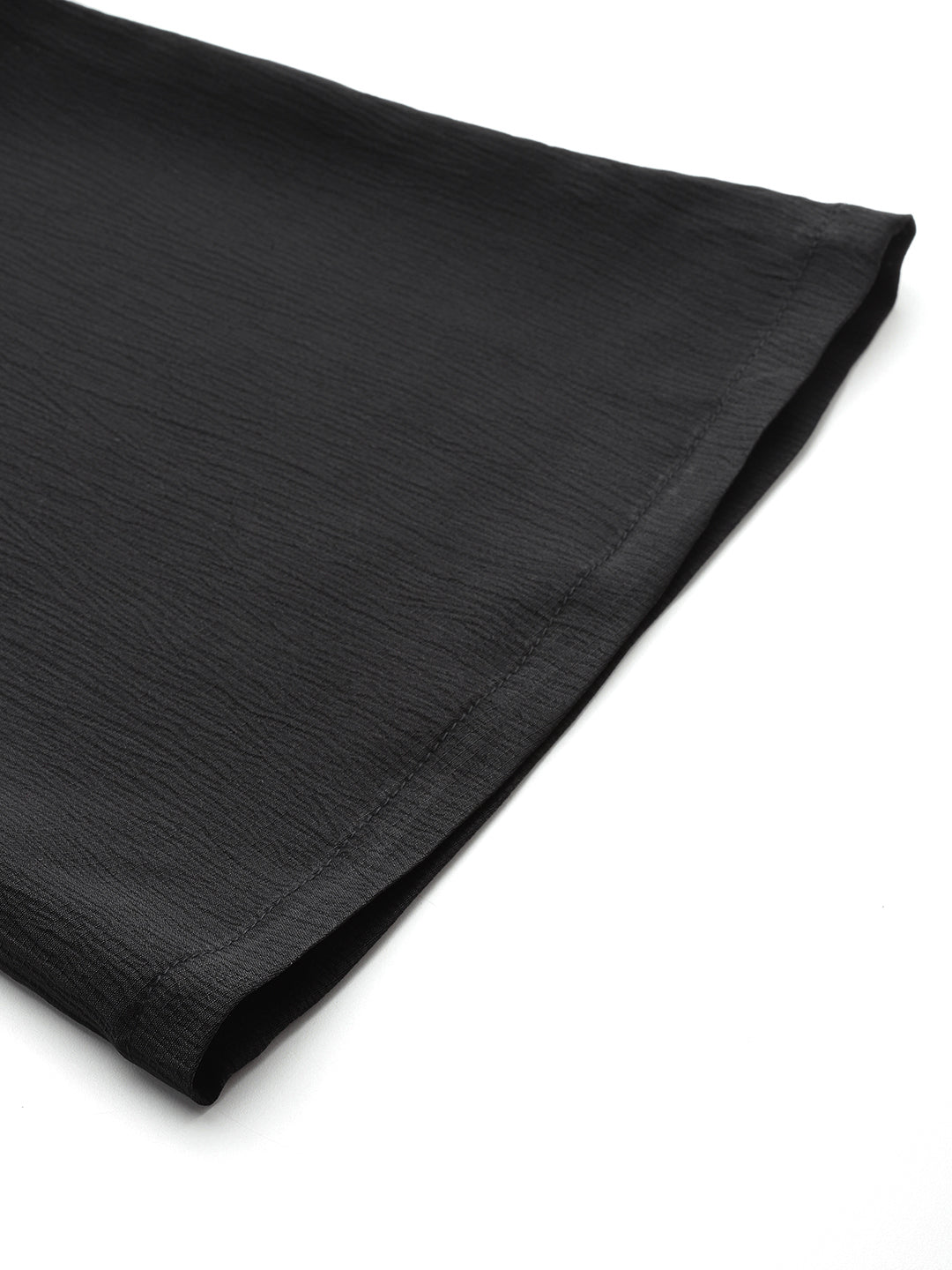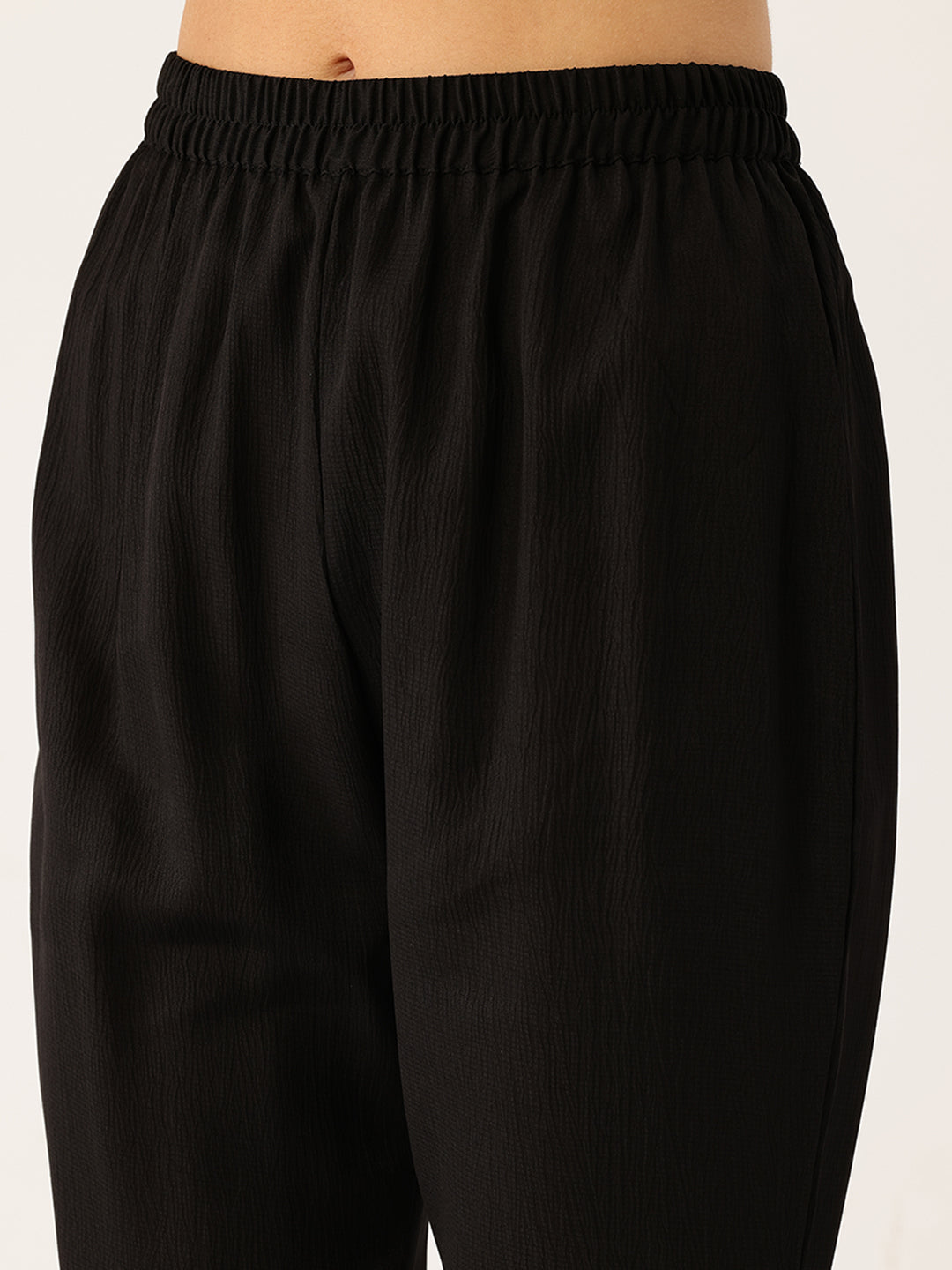 Black crinkled effect trousers, slip-on closure, elasticated waistband