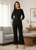 Sleek Italia Crinkled Effect Mandarin Collar Puff Sleeves Co-ords