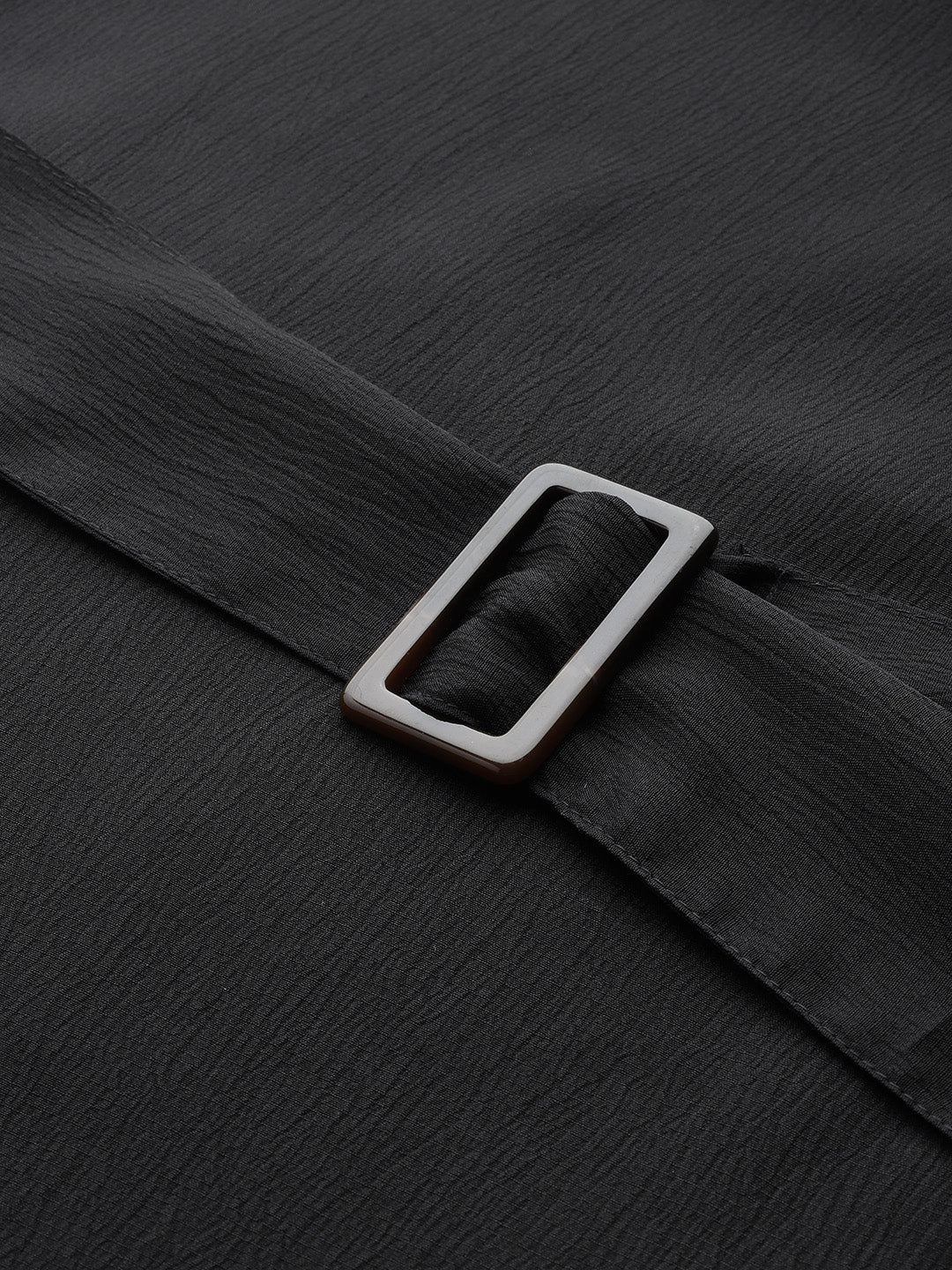 Black crinkled effect top, has a mandarin collar, long sleeves