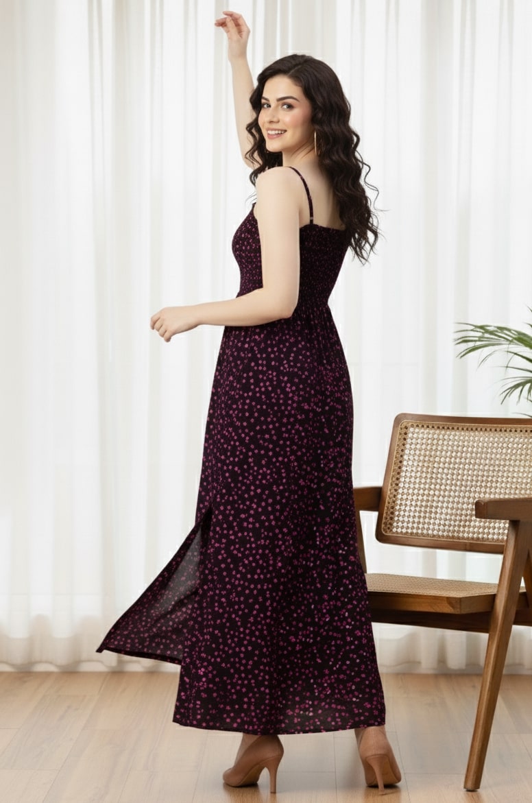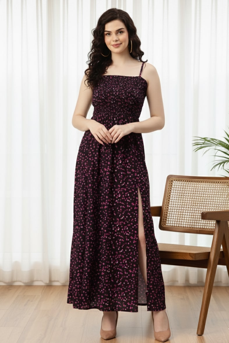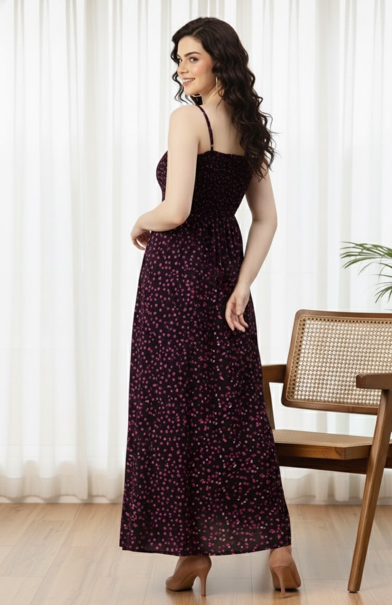 Sleek Italia Floral Printed Shoulder Straps Crepe Maxi Dress