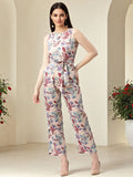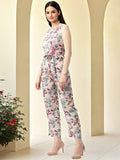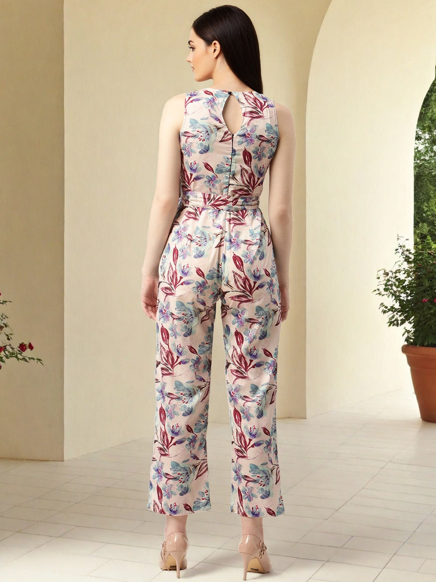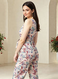 Sleek Italia Floral Printed Waist Tie Ups Basic Jumpsuit