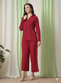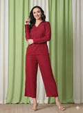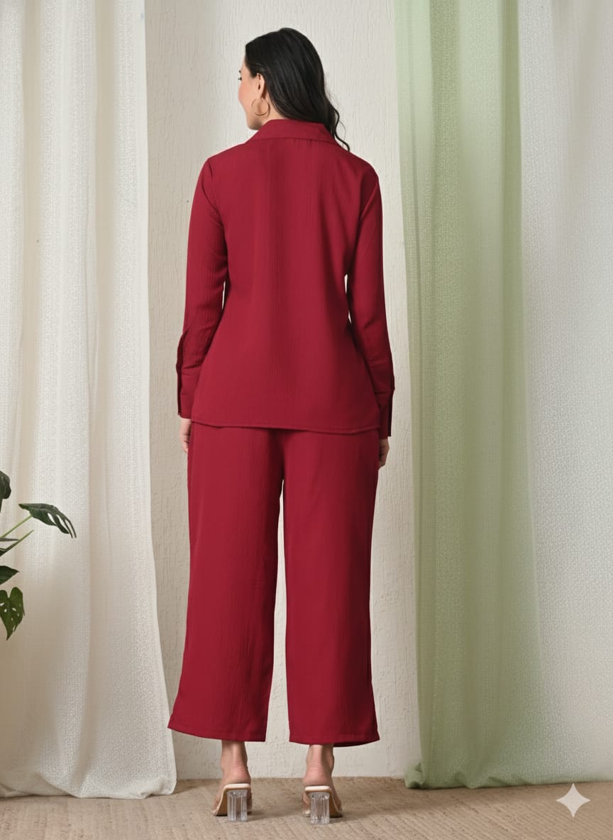 Sleek Italia Maroon Shirt Collar Top & Trousers Co-Ords