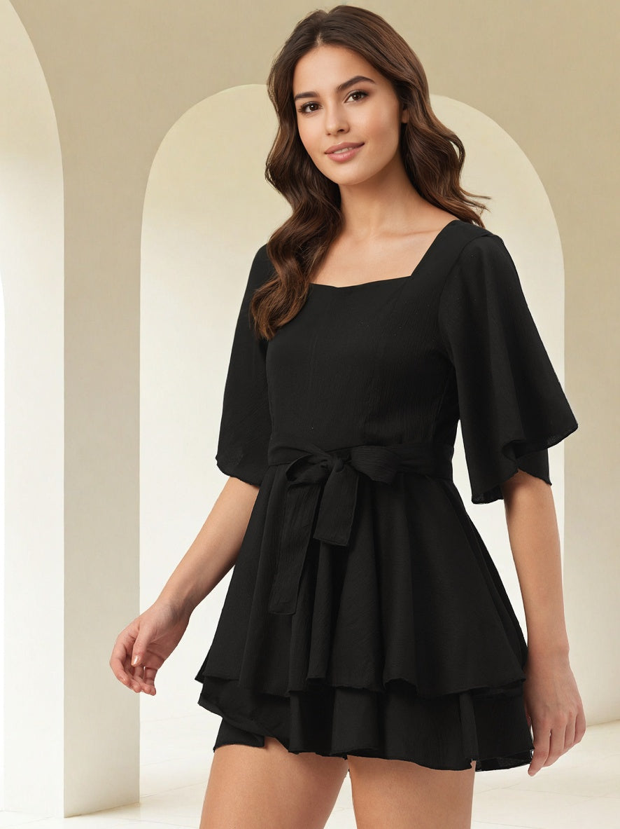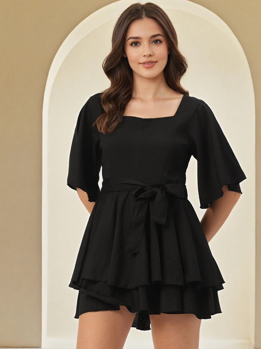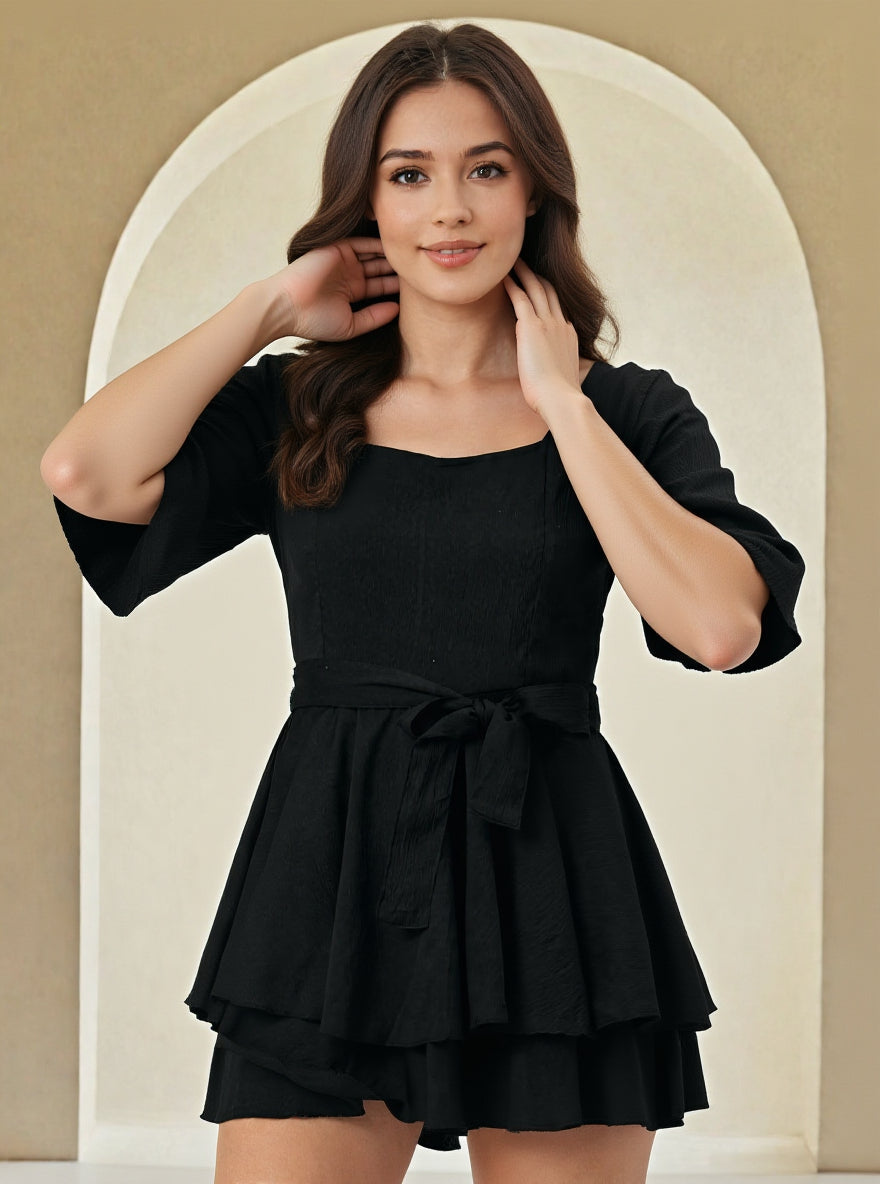 Stay playful yet elegant with the Sleek Italia Ruffled Playsuit. Designed with delicate ruffle detailing, this one-piece outfit is perfect for adding a fun, feminine twist to your everyday style. Lightweight and easy to wear, it’s the ideal choice for brunch dates, vacations, or casual evenings out. Simple yet stylish, this playsuit makes dressing up effortless and chic.