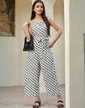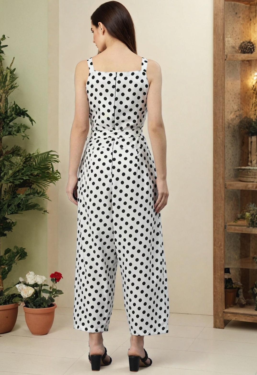 Sleek Italia White Polka Dots Printed Strappy Basic Jumpsuit
