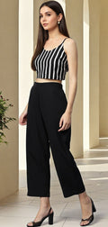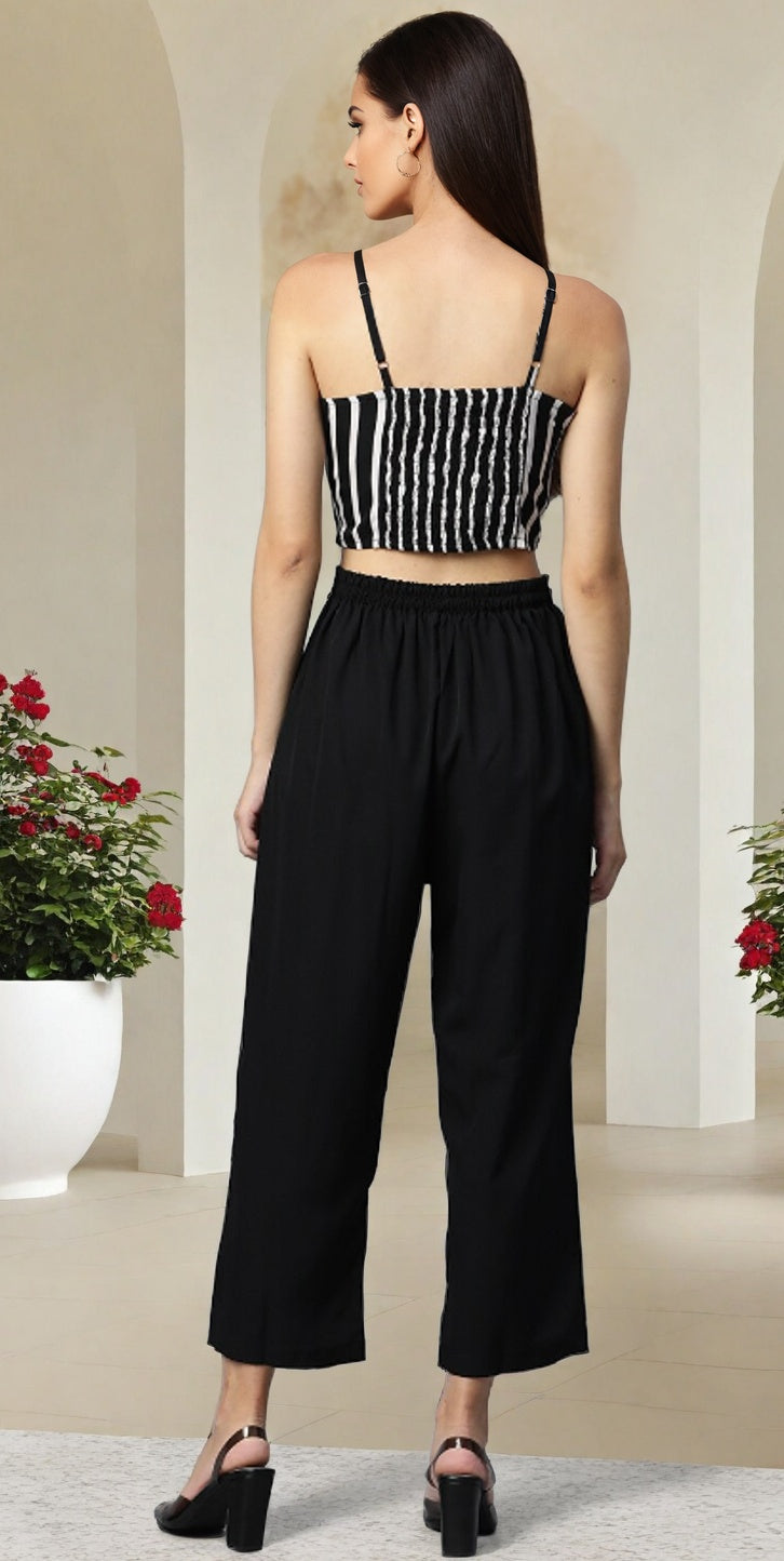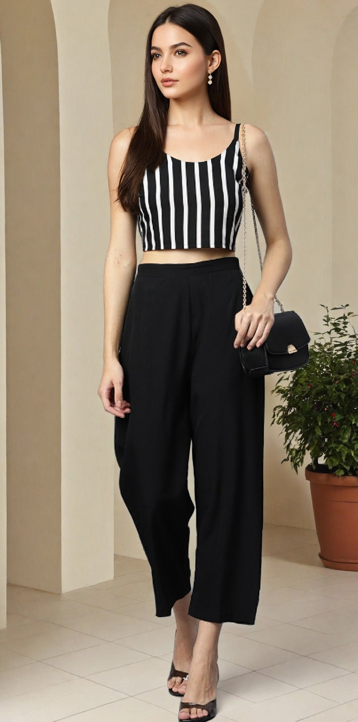 This women's striped top & trousers set is where comfort meets modern style. Featuring a relaxed-fit top paired with matching high-rise trousers, this co-ord set is perfect for effortless everyday dressing. The vertical stripes add a touch of sophistication and elongate the silhouette, making it a flattering choice for all body types.