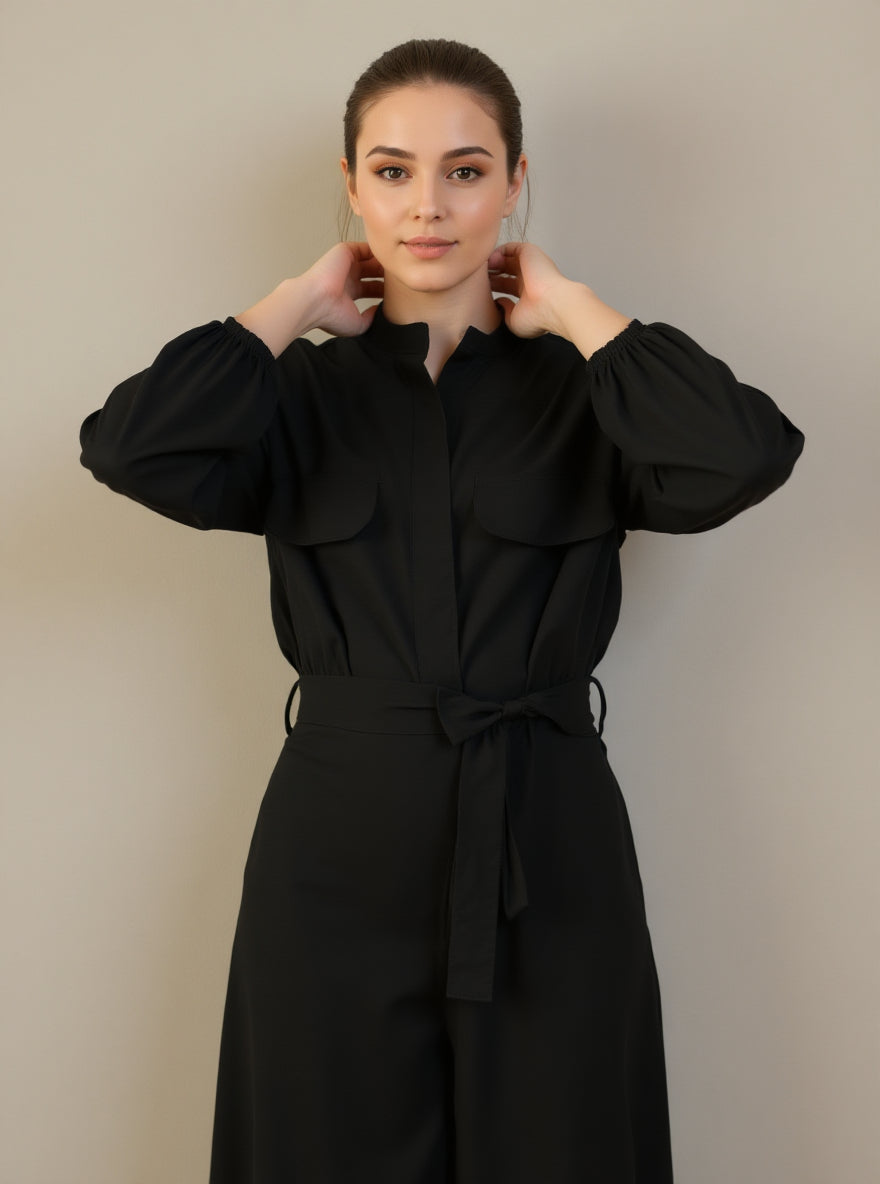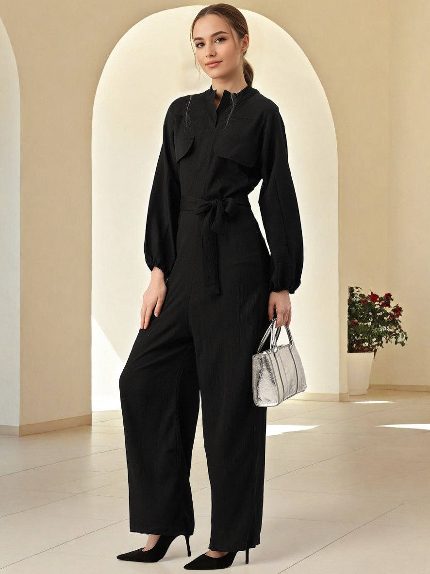 Add a touch of elegance to your wardrobe with the Sleek Italia Textured Bishop Sleeve Basic Jumpsuit. Designed with graceful bishop sleeves and a chic textured fabric, this jumpsuit brings together comfort and sophistication in one effortless outfit. Its clean silhouette makes it perfect for both casual days and special evenings, giving you a polished look with minimal effort.