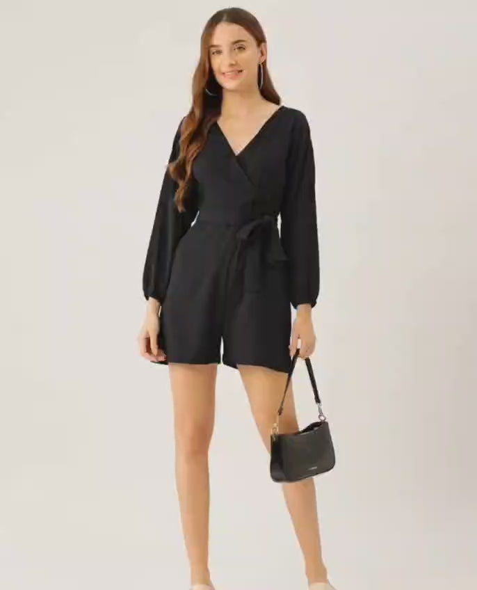 This women’s V-neck jumpsuit blends simplicity with sophistication. Designed with a clean V-neckline and adjustable waist tie-ups, it enhances your natural shape while offering a tailored, flattering fit. The minimalist silhouette is both timeless and versatile, perfect for dressing up or down depending on the occasion.