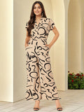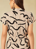 Sleek Italia Abstract Print Puff Sleeve Crepe Top