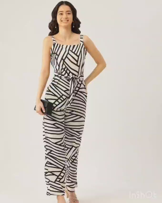This Women’s Geometric Print Square-Neck Jumpsuit combines contemporary style with comfort. Featuring a distinctive square neckline and an eye-catching geometric pattern, it offers a modern silhouette that flatters various body types. Crafted for ease of movement and all-day wear, this jumpsuit is ideal for both casual outings and sophisticated events, providing a versatile addition to your wardrobe.