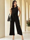 This women's jumpsuit features a flattering waist tie-up that enhances your silhouette while providing adjustable comfort. Crafted for both style and ease, it offers a streamlined look suitable for various occasions, combining practicality with elegant design. Ideal for those seeking a versatile wardrobe staple that balances form and function.
