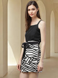 Women’s Black & White Geometric Print Playsuit with Waist Tie